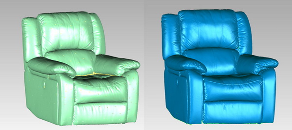 整個過程快速便捷地獲取皮沙發(fā)的三維數(shù)據(jù),將沙發(fā)真實還原,展現(xiàn)在PC端、移動端,使顧家家居的客戶能更方便、更全面地在線上就能了解其產(chǎn)品細節(jié),為顧家家居實現(xiàn)AR購物技術(shù)上邁出了第一步。更能迎合科技潮流,用三維展示技術(shù)讓消費者更加全面得了解產(chǎn)品特點和細節(jié),同時通過三維展示技術(shù)提高家具的宣傳質(zhì)量和效果。而三維展示必不可少的前提就是要有三維數(shù)據(jù)。傳統(tǒng)的方法是通過人工三維建模獲得與產(chǎn)品外觀相近的三維模型。這種方法不僅耗時,而且模型的真實度也不高,特別是一些細節(jié),靠人工建模雕刻很難復(fù)現(xiàn)。文程數(shù)碼科技能夠提供一種更加方便快捷,模型的細節(jié)也更加真實的獲取三維模型的方法。不僅提高了獲取三維模型的效率,還提高三維模型的質(zhì)量,通過后期處理獲得清晰逼真的三維模型,完美解決家居的問題。