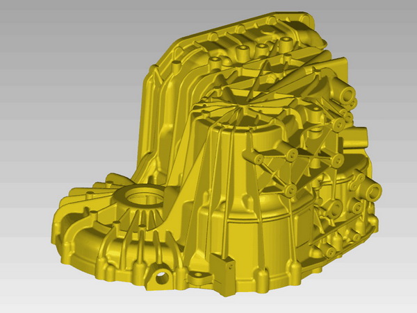 變速箱殼體的加工質(zhì)量直接影響變速箱內(nèi)部部件的精度、性能和壽命。因此,汽車變速箱殼體的質(zhì)量把控對汽車的性能、質(zhì)量與安全尤為重要。然而,汽車變速箱蓋外表輪廓結(jié)構(gòu)極為復(fù)雜,凹凸曲面非常多,傳統(tǒng)的檢測方式工作量非常大、耗時且不精準。三維掃描儀的出現(xiàn)顛覆了變速箱殼體檢測過程,大大提升了變速箱殼體檢測的效率。